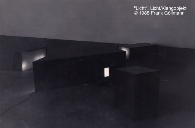 1988: 5.Film und Videotreff, Köln 1988: Licht/Klangobjekt 1988: "Licht" 1987: "Raum3" Installationen, Projektionen 1985: Kunstpalast "Halle A4" Installation 1982: Keramikarbeiten