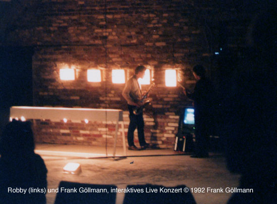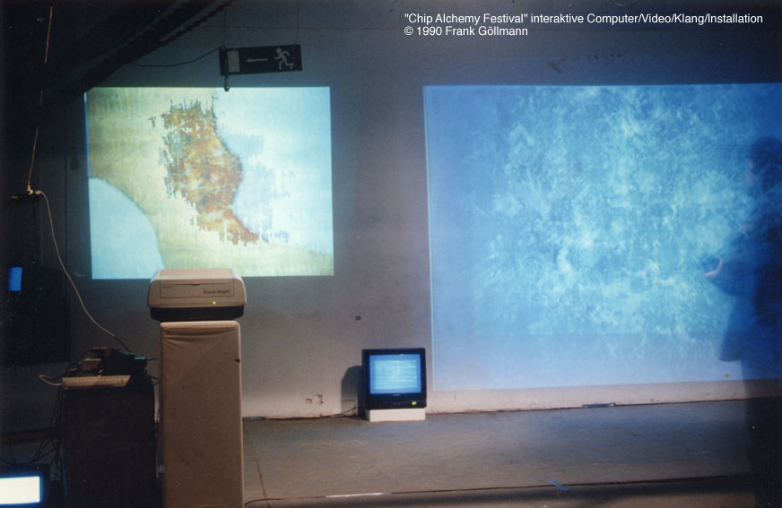 1992: "Colourfalls", Mönchengladbach 1992: "Klang Raum Bilder" 1991: "Kollossal", Aachen 1991 "Ohne Rahmen", Bern 1991 "Klang-Bewegung-Licht" 1990: "90 Min Zeit?", "Atari Messe" 1990: "Chip Alchemie Festival", Bonn 1989: "Licht im Bunker"