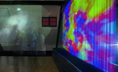 Hauptbahnhof mit einer Licht - Klangperformance.